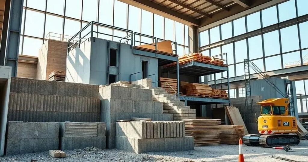 - Menos desperdício de material: Os elementos são fabricados em ambiente controlado.