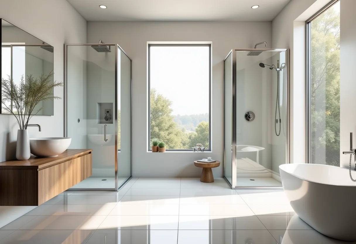 Além das medidas, os materiais e acabamentos também influenciam no resultado final. Vidro temperado é o mais seguro e resistente, enquanto o acrílico é mais leve e econômico. Nos acabamentos, você pode escolher entre transparente, fumê, jateado e outros. Pense no estilo do seu banheiro e nas suas preferências!